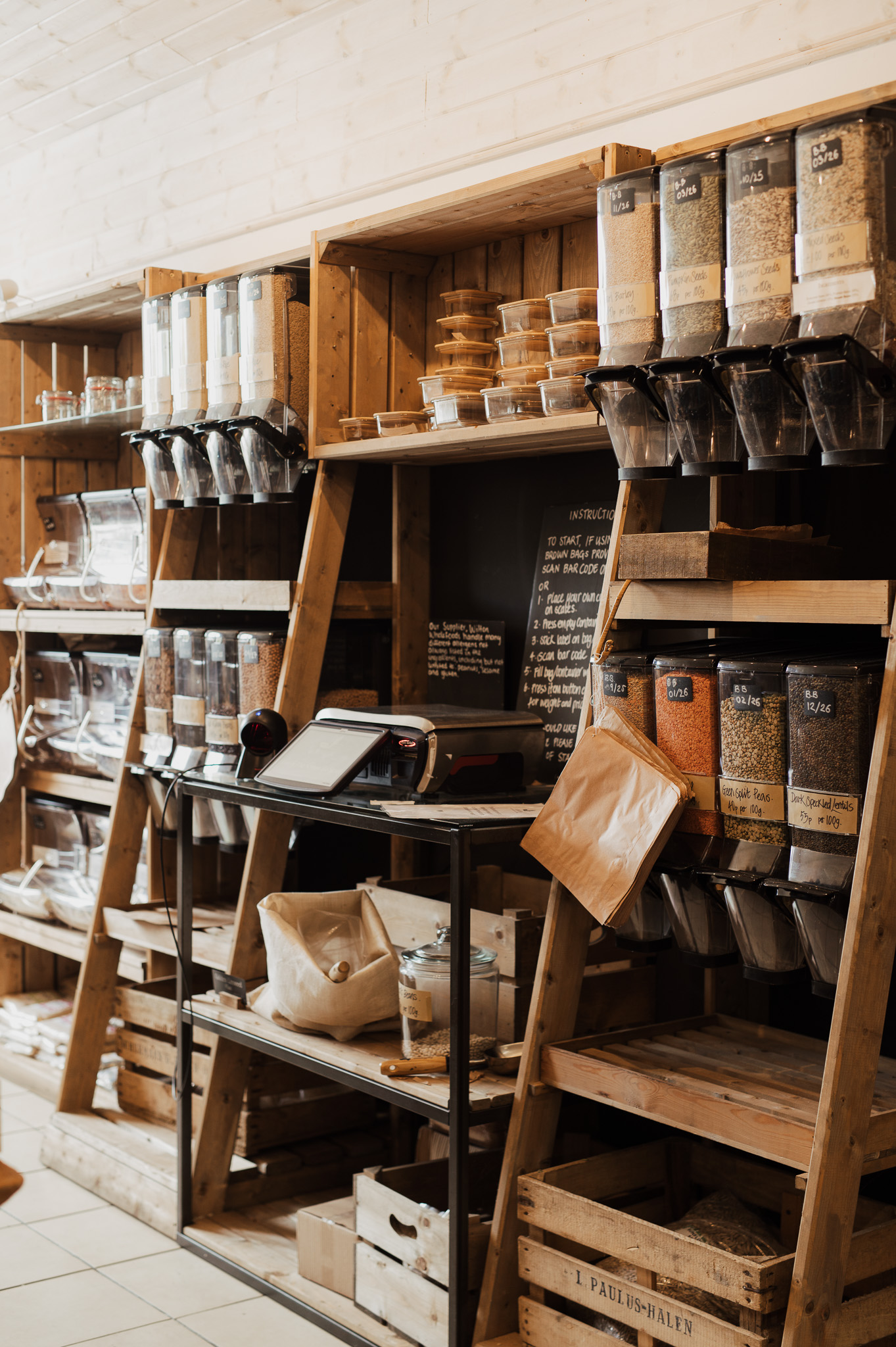 We have a wonderful bulk dispensing unit where you can dispense your own every day essential into your own containers. No need for any extra packaging at all.